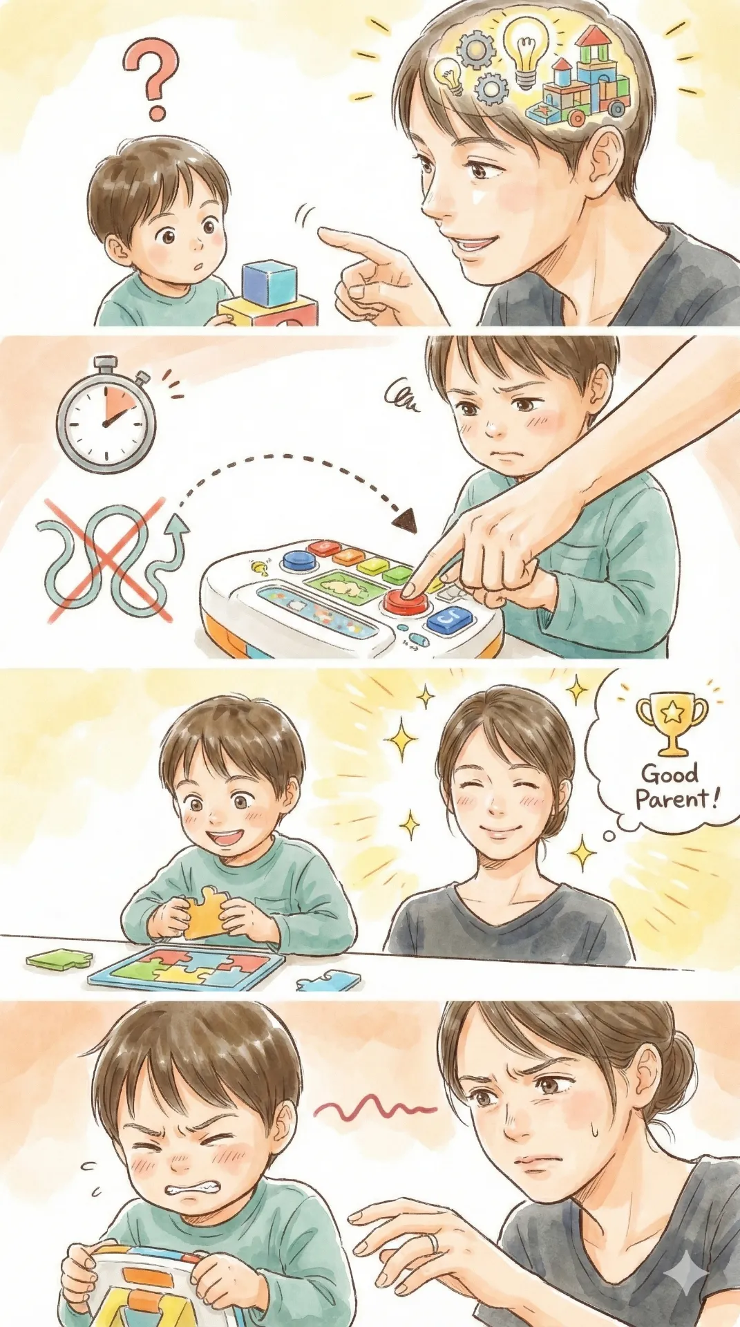 「せっかくなら効率よく、正しく遊んでほしい」「失敗してかんしゃくを起こされたくない」という、先回りしたリスク回避の心理が働きます。